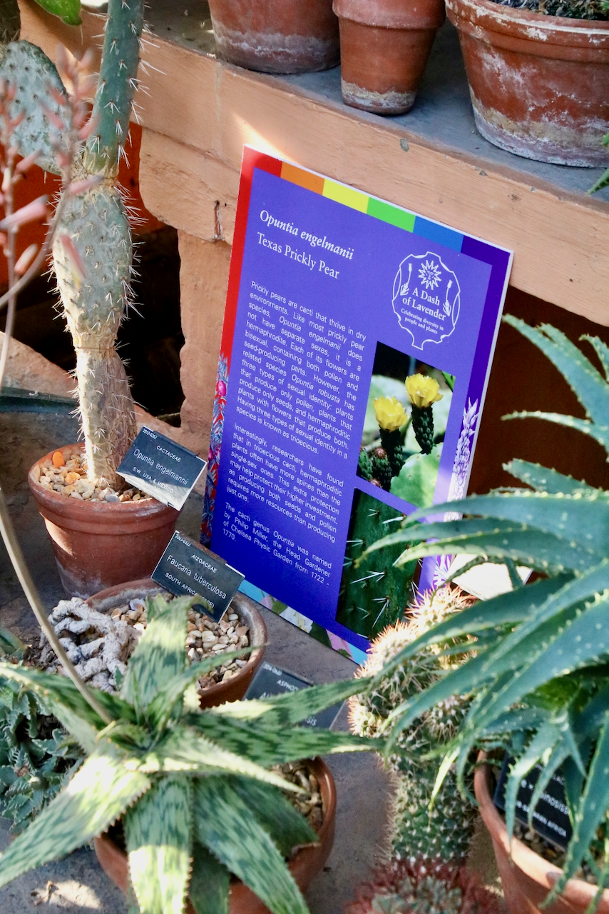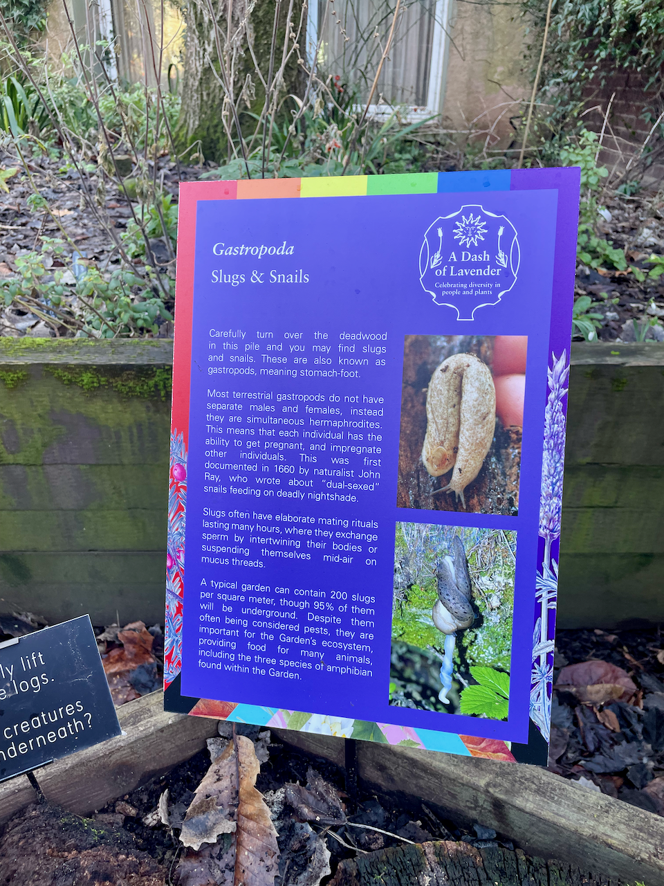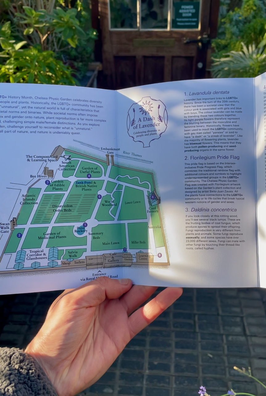 Connor has curated Chelsea Physic Garden’s ‘Dash of Lavender’ exhibition since 2024. This exhibition coincides with LGBTQ+ History Month and challenges perceptions of what is considered “natural” or “unnatural”. Connor researched and designed a nature trail around Chelsea Physic Garden, selecting plants and animals with lifecycles that don’t conform to societal norms. He also designed a series of suspended flags and interpretation boards. See guide book.