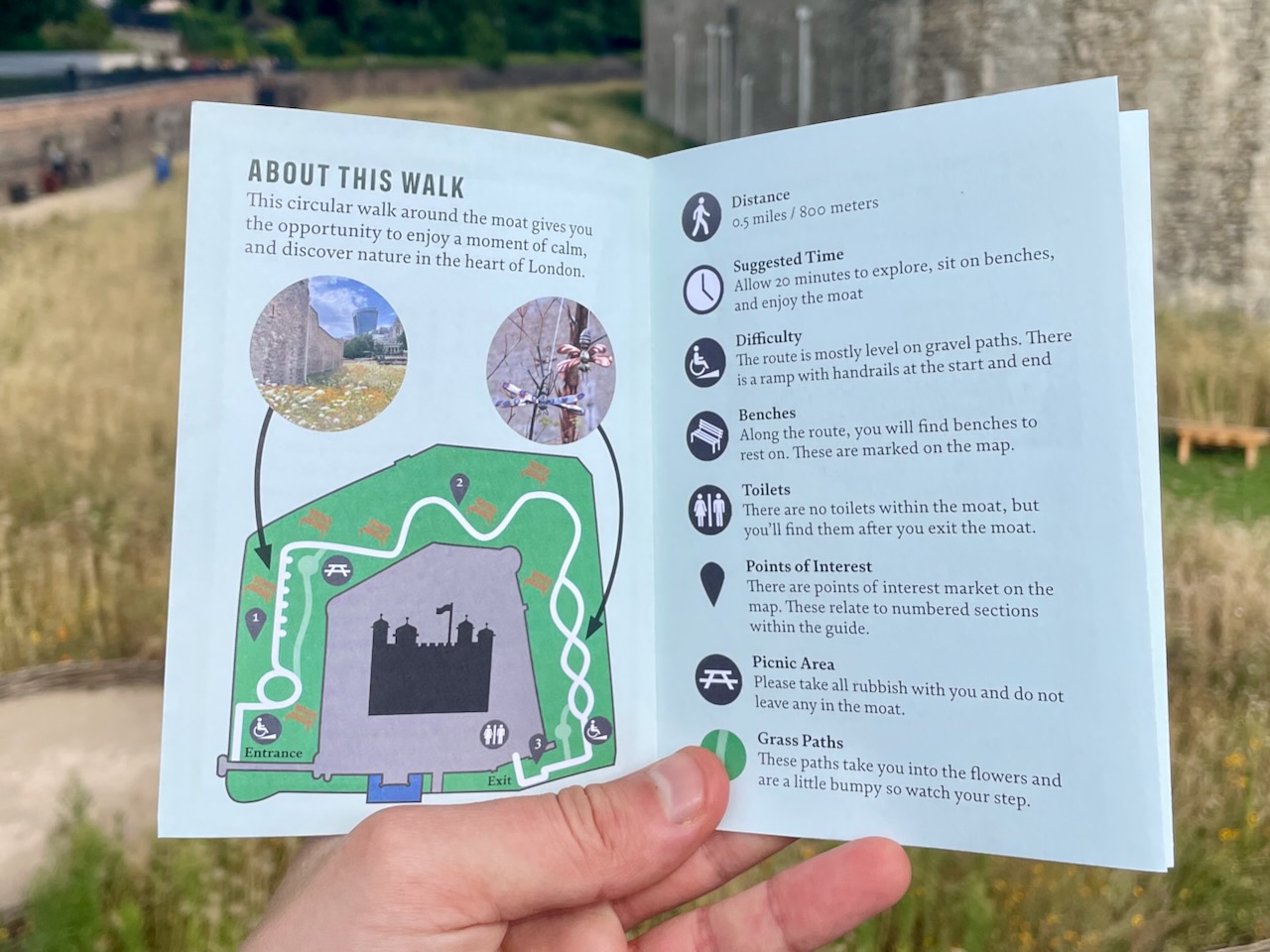 Connor was commissioned by Historic Royal Palaces to develop a dementia-friendly fold-out guide for the Tower of London’s moat. Connor designed an accessible map highlighting rest stops, toilets, and slopes. The map also features points of interest around the moat and identifies sensory plants and insects to explore. Connor created custom illustrations of the plants and animals found in the moat. This fold out guide is offered free to visitors at the Tower of London.